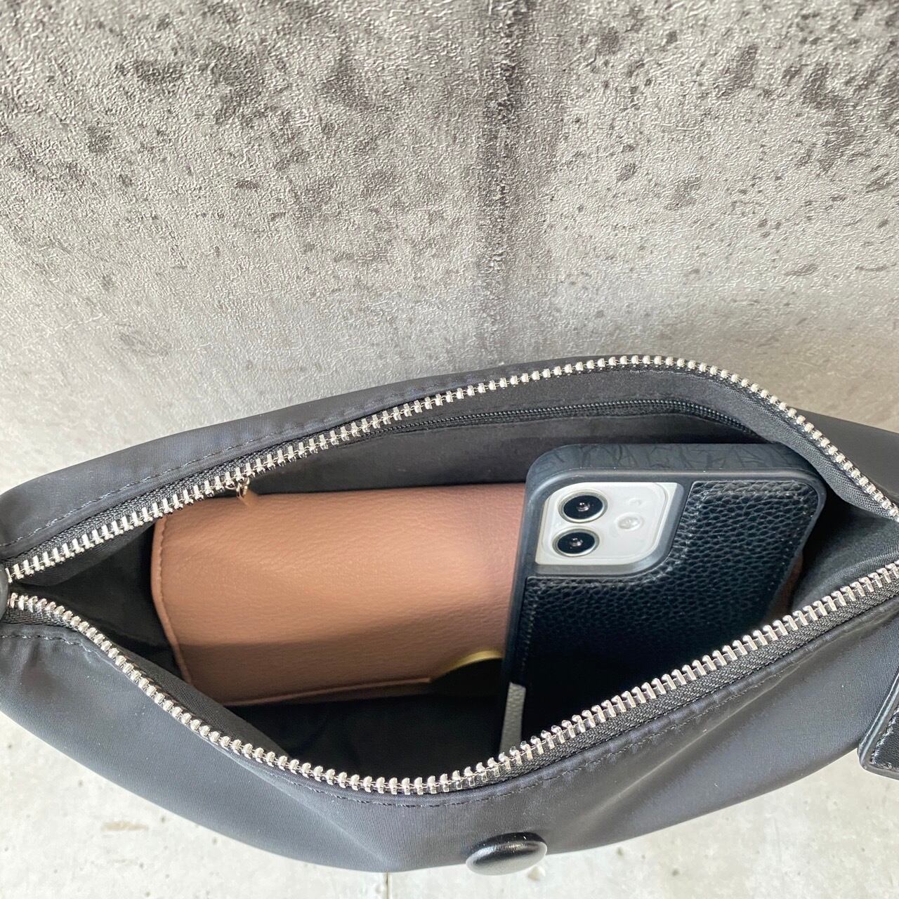 長さの違うショルダーが2本付いた、便利なバッグ。